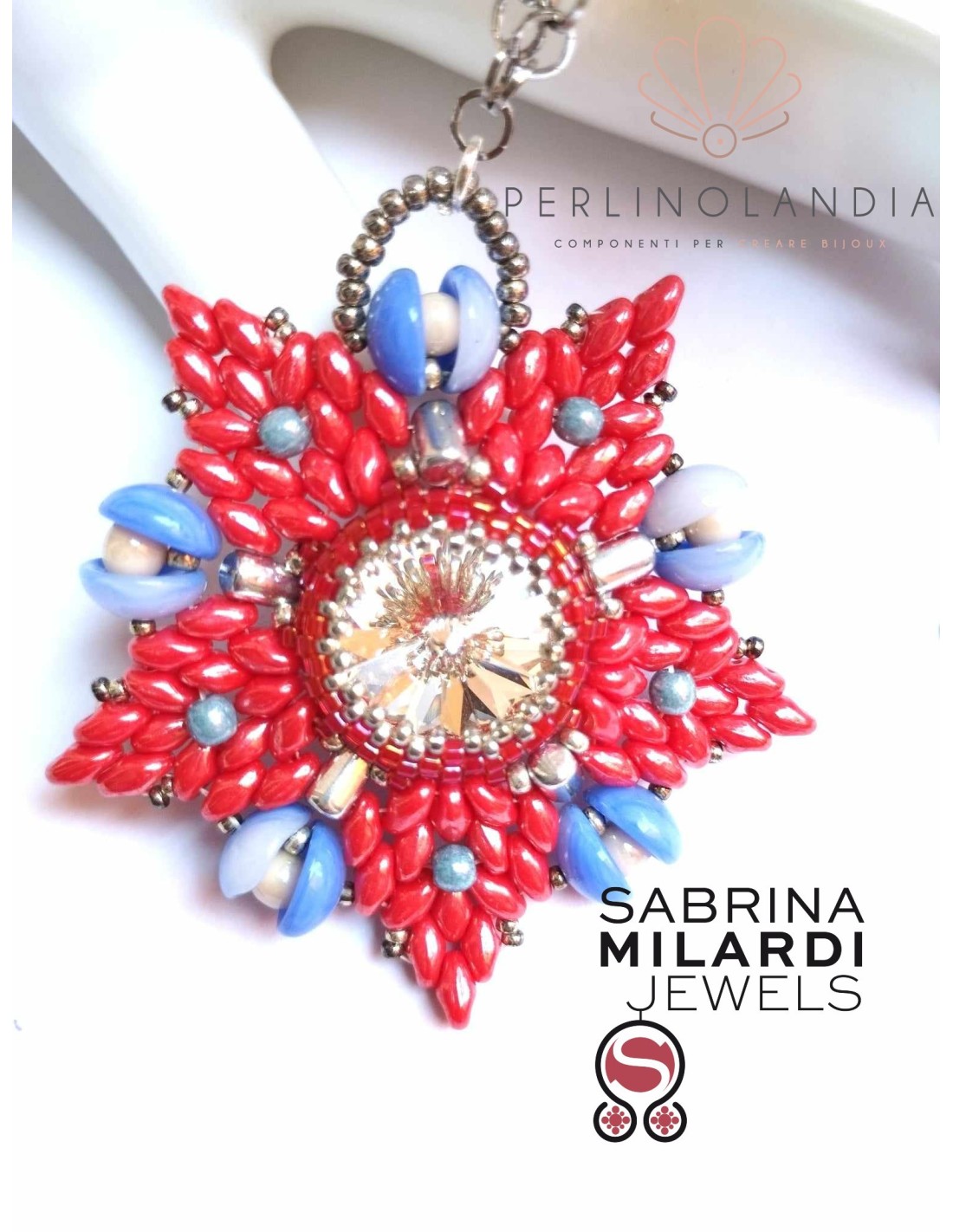 collana medaglione decorato - azzurrro/dorato -Gioiello Finito - Handmade - Di Sabrina...
