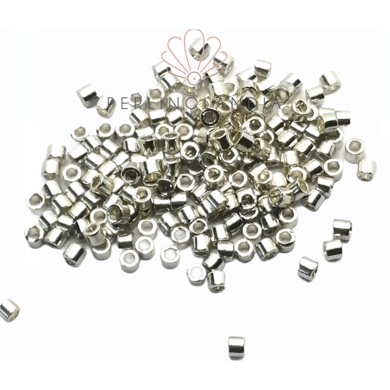Delica Miyuki 10/0. Perline di alta precisione a forma cilindrica in vetro pressato. Prodotte dalla prestigiosa ditta giapponese Miyuki. Vengono vendute in confezioni da 5 grammi che corrispondono circa a 500 perline. Diametro: 2,1mm Altezza: 1,7mm Diametro foro: 0,95mm